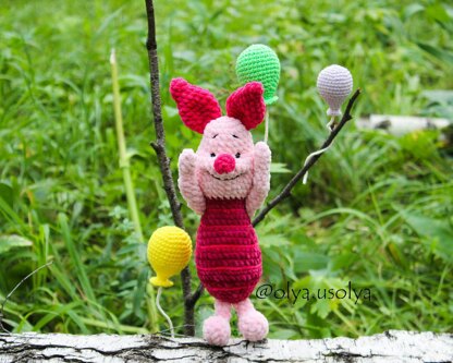Piglet + balloons pattern (PDF + 5 videos) Winnie the Pooh