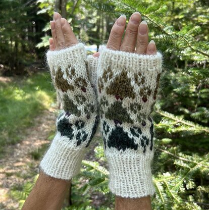 The Pine Croft Fingerless Mitts pattern is a fun design for knitters interested in honing their skills at stranded knitting in the round. It calls for medium-weight 100% Icelandic wool that works up easily, producing a cozy, light-weight barrier against the cold. This design is also perfect for using up stash yarn! The pattern includes written instructions and a chart for each size.