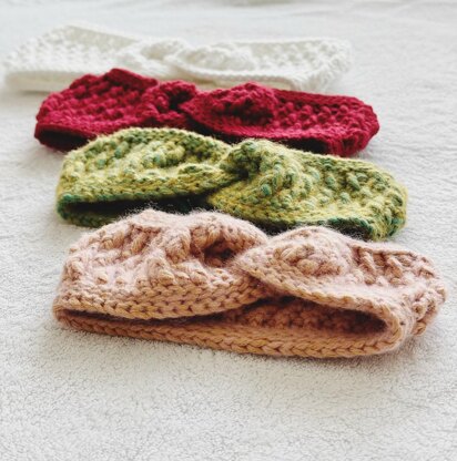 The Pine Crochet Earwarmer uses the Crochet Alpine stitch technique to create a textured look for this earwarmer.