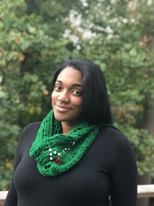To capture the holiday spirit, beads and a bow can be added to create decorated tree. And have fun making several of these in different colors this fall and winter. Since it’s airy, it can be worn in the spring too.