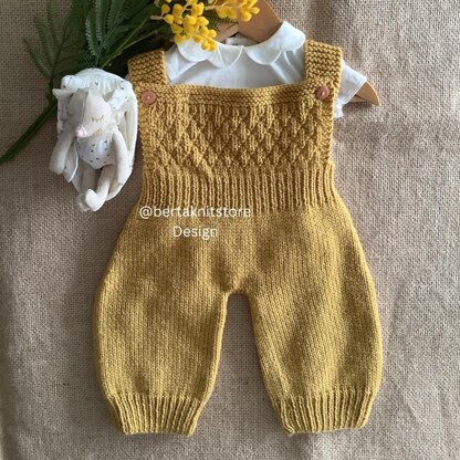 Instructions on how to make this Jumpsuit Pattern. (PDF in English) Sizes available: 0-3 months, 3-6 months, 6-9 months, 9-12 months, 12-18 months, and 18-24 months. Experience level: Advanced Beginner. Yarn and needles used: DK weight yarn, 3,5 mm (4US), and 3 mm (2.5US) straight needles. Worked Flat. This is a digital file, not the actual finished item. You cannot resell this pattern but you can sell the finished item! ©Berta Knit Store All Rights Reserved.