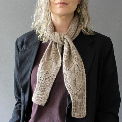 Pinecone Scarf is a sideways-knit scarf worked from tip to tip in an elongated, tapered triangular-like shape.