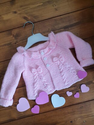 This cardigan is made for 12 months old girl. I used Sylecraft special DK for the project. Cardigan is made top down flat in one piece with raglan sleeves incorporated in the process. It's fun to make and there are some details like ruffles and bows to make it very pretty. If you don't like too girly look, ruffles and bows can be skipped.