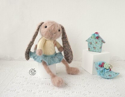 Materials needed • 4 double-pointed needles in a size suitable for the yarn weight you are using. I recommend using needles a size or two smaller than the yarn calls for, to produce a firm fabric. İ used Needles size 2,5 (3mm) for banny, 2,5 (3mm) for clothes • Cream yarn Special Stylecraft DK color Cream (1005) (100% acrylic 304 meters / 100 grams) • Gedifra Rubens yarn colors (8357) (45% Polyacrylic, 24% Polyamide, 17% Viscose, 24% Polyester 60 meters / 50 grams) • Pink yarn Paris by Nako color Yellowish Powder (10390) (Worsted 60% Polyester, 40% Acrylic 244 meters / 100 grams) for the skirt • Blue yarn Stylecraft color Sky Blue (1032)(Wondersoft 3 Ply 100% Acrylic, 3.5oz, Light Fingering ) • Toy stuffing • Plastic eyes or 2 buttons for eyes • Yarn needle • Stitch holder • Flower for decor