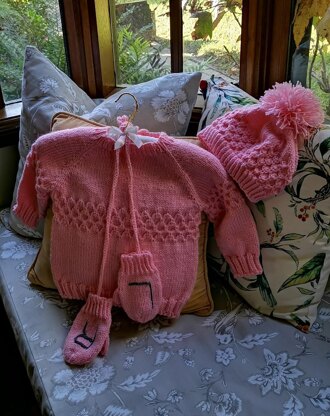 The sweater is knitted from top to bottom while the beanie is knitted in round from bottom both using diamond stitches to create beautiful texture.