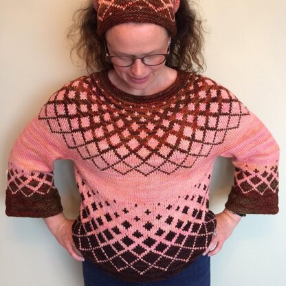 I have made a headband pattern (Pink Diamonds Headband) with the same colorwork and yarn that is free of charge and that I recommend you knit for checking gauge.