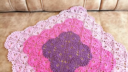 This blanket is worked in round from the center out. The pattern is a repetition of 5 rows, which means you can customize the blanket size by the number of repetitions.
