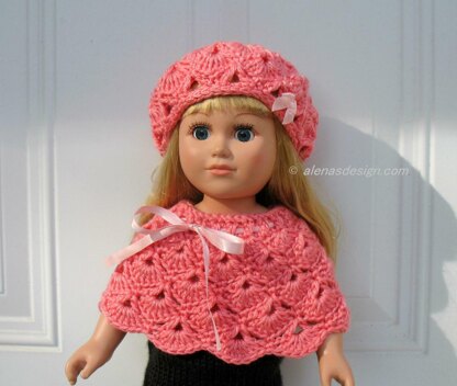 This poncho and hat set features a lace pattern. Crochet this beautiful set for your favorite 18 inch doll.