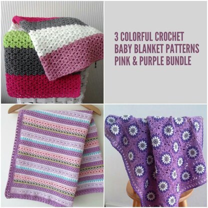 Colorful Crochet Baby Blankets - Pink & Purple bundle contains 3 modern baby blanket designs: