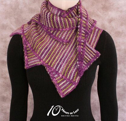 Say “bye” to boring with a two-toned, triangular-edged shawl! Knitted with just one color per row, this artsy accent sports columns of cable twists on a striped garter background with a petite pennant border. Best of all? It’s worked from corner-to-corner, so you can adjust the final size on the fly. And with our step-by-step instructions for making any size in any weight of yarn, you can create a colorful assortment of finishing fashions…..from laceweight scarves to jumbo wraps!