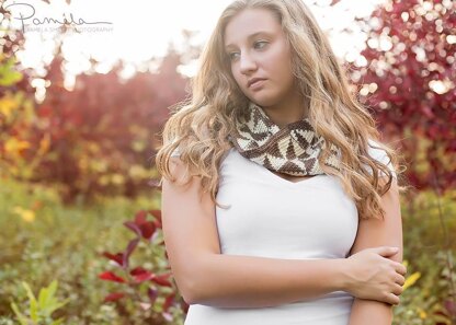 If you love the look of knitted fair isle but can’t knit (like me) the Pinwheel Cowl is the perfect solution!