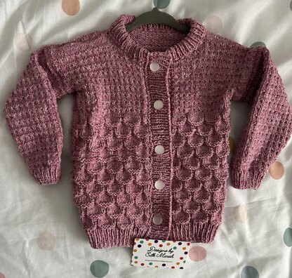 I have always loved searching for shells on beaches when I visit and this Waves Stitch reminds me of the shape of the cockle shells. It is mixed with Andalusian Stitch, and is available in chest sizes 16-22", which is approximate ages of Birth-3 years. I have designed this beautiful cardigan using King Cole Simply Denim DK which has a mix of Acrylic and Cotton making it the perfect yarn for the warmer summery months of the year.