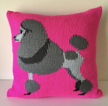 Knitted cushion cover featuring a perfectly preened Poodle!