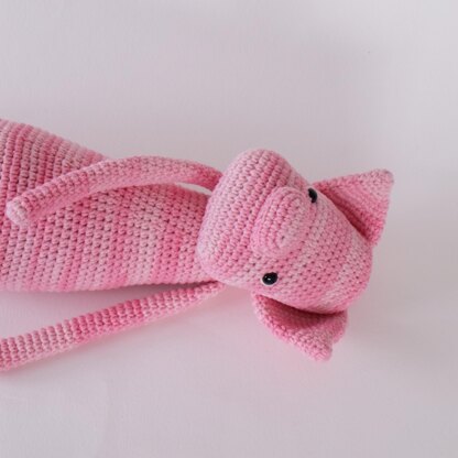 This is Pipsie the pig, When finished he measures around 17 inches tall (when using the recommended yarn and hook) The Pattern is step by step, I recommend it as a confident beginner pattern. The instructions are detailed and easy to follow if you know the basic stitches and techniques used to make amigurumi . There are lots of pictures included in the pattern.