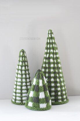 These adorable plaid knit Christmas Trees are the most fun holiday knitting project you'll find! Detailed instructions include charts to knit all three trees, each with a different plaid pattern and size. There are also instructions for finishing your plaid knit Christmas trees and making sure they stand up crisp and tall (don't worry, it's super easy, takes only a few minutes and doesn't require any weird supplies!)
