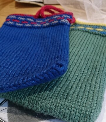 Materials: 8 ply/DK yarn – 100 m/110 yards 50g Colour A - 60 [100] m/65 [110] yards Colour B - 10 [15] m/10 [15] yards Colour C – 15 [20] m/15 [20] yards See note for working with scraps for Ribbon stitch edging Optional – 1 Button – 1 3.75 cm/1.5 inch diameter 1 stitch marker