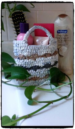 Have you run out of yarn?? No problem! You can make this Shower and Bath Caddy from the plastic grocery bags you have laying around the house. Instructions are included for creating your Plarn in custom colors. The shown Plarn Caddy is made with 3 different colors of plarn, but you can use as few or as many colors as you choose. You can even use trash bags is you don't have any plastic grocery bags. The caddy is strong, durable and waterproof. It is great for use in the kitchen or bathroom.