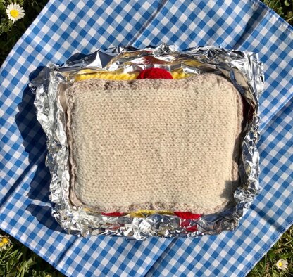 This knitted cheese and tomato sandwich is a fun, easy knit and makes an instantly recognisable addition to any collection of play/display food.