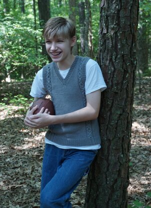 This vest was designed for my son, who loves watching football, hence the 'playbook' name instead of the more traditional 'hugs and kisses' that the cable pattern evokes.