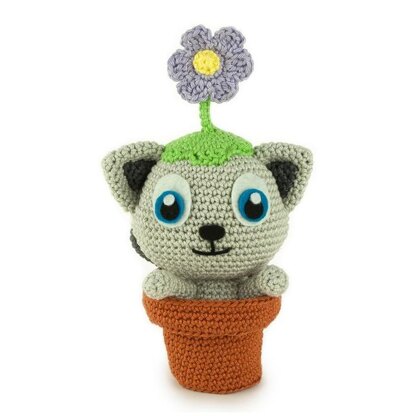 Materials Crochet needle (2,5 mm) Brown yarn (for instance Phildar Phil Coton 3 - Cuivre 72) Light gray yarn (for instance Katia Capri - 135) Dark gray yarn (for instance Phildar Phil Coton 3 - Minerai 48) Green yarn (for instance Phildar Phil Coton 3 - Pomme 85) Purple yarn (for instance Phildar Phil Coton 3 - Lavande 69) Yellow yarn (for instance Phildar Phil Coton 3 - Citron 63) Black yarn (for instance Phildar Phil Coton 3 - Noir 67) Fiber fill Iron wire White, blue and black felt