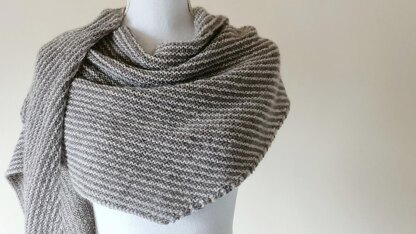 The shawl is worked flat in one piece from the top right corner across and downwards. Two increases at the beginning and one decrease at the end of every RS row creates an asymmetric triangular shape.