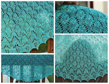 Playful Plumage Crescent is a crescent shaped shawl knit in one piece from the center-top outward. It is shaped by all the increasing done on the edging. With both charts and written instructions, knitters are able to choose the most comfortable way to follow the pattern. It can easily be customized by changing the number of repeats of charts 2.
