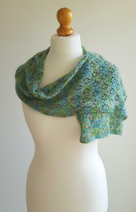 The finished scarf measures about 30 cm wide and 150 cm long, depending on how aggressively you block your garment and on the fibre you use.