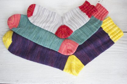 When I designed this pattern I had been itching to make two-tone socks for years! Their classic look, and fun colour contrasts make for a great way to play with colours. (Who says you have to make each sock match either!) My barrier to using existing patterns was that most sock patterns are designed for wool yarn and weren’t entirely compatible because veggie yarns behave a bit differently, and this style is often made with thicker yarn like DK or worsted. If you’ve got some Vegan Yarn Pleiades Sock, and the right needles, then you’re all set to make some socks! And since there are six sizes, why not make them for the whole family?