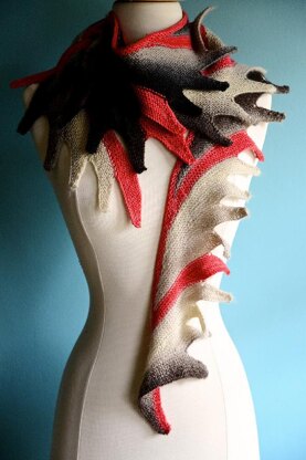 Plumage is a reversible scarf made out of short-rows in garter stitch. The scarf can be as long as you wish and can be knit with any yarn gauge. Each feather can be made with a different yarn (as long as it fits the chosen gauge) or you can make your own pattern. One feather requires approximately 10 yards of yarn so this scarf is the perfect stash buster!
