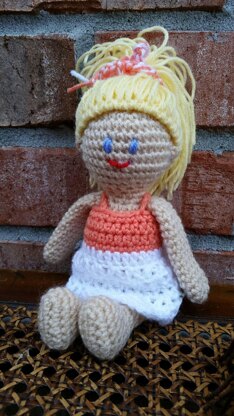 The pattern has a basic pattern for body, arms, legs, and dress, but can be personalized with hair choices and eye color!