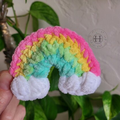 It's a plushy take on my Happy Rainbow pattern. Designed differently, it works up quick, is no-sew and there's no limit to the color combinations you can make!