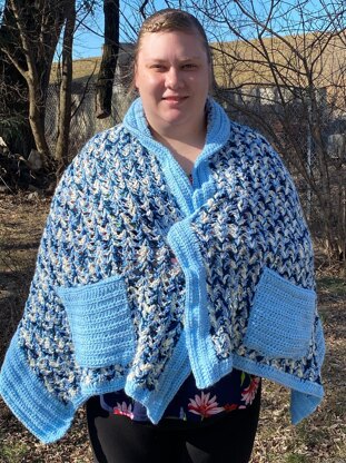 I saw the iris stitch and thought it would be perfect for to use for this pattern! Then the border is created around all sides of the shawl for a more complete look and to give that longer back.