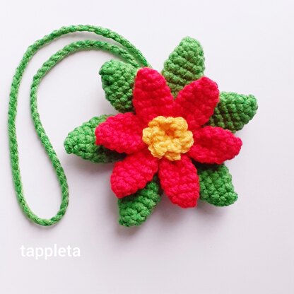 Poinsettia charm crochet pattern, Crochet Poinsettia ornament rear view mirror car, Christmas car decor crochet flower bag charm accessories