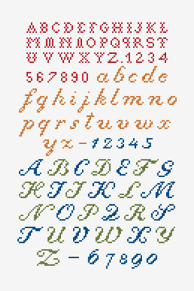 In this free cross stitch pattern, designer Thérèse de Dillmont offers unique script and cursive lettering. Add a personal touch to your next cross stitch project with a monogram or thoughtful message. Use this free design for linens, sleepwear, and more. For beginner cross stitchers, check out our guide on how to cross stitch!