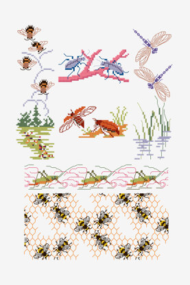 This free cross stitch design is buzzin’! Featuring a range of insects including grasshoppers, beetles and bumblebees, designer Thérèse de Dillmont transports us to beautiful natural scene in this pattern. Add a little fauna to your next project with this design. For beginner cross stitchers, check out our guide on how to cross stitch!