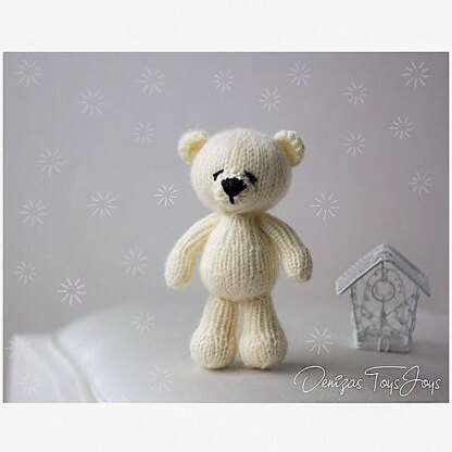 Polar bear Toy. The toy is knitted in the round and is recommended for Advanced Beginner Knitters. The finished bear is approximately 5,9 inches (15 cm) tall.