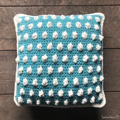 This pattern uses 2 colors, one for the main colour and a contrast colour for the polka dots. Start with the main colour and switch to contrast colour on the very last st of the single crochet. Work the bobble and switch back to main colour as you pull through the last loop on the dc. You can old the unused colour behind while you are working with the other and no need to bind off. Both colors will follow behind the pattern making it easy to switch between the two as needed. Just remember to keep the yarn behind on the wrong side of the pattern. If you notice you are starting to tangle your yarn, make sure you detangle after you finish each row or you could get yourself in to some trouble!