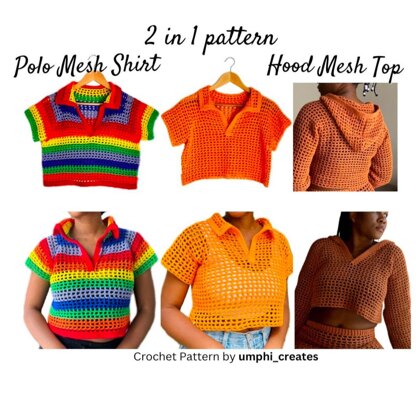 Polo Mesh Shirt Crochet Pattern (English)|Hood Mesh Crochet Top