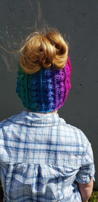 This hat is perfect for the chilly night to have that extra warmth, it's thick and textured and uses the beautiful RedHeart Stripes yarn, I also incorporate an elastic ponytail into the hat so the hole will keep it's shape through use and wash.