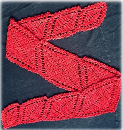Pomegranate is a scarf or shawlette composed of overlapping leaves of different sizes, which is very satisfying to create. The leaves start small and gradually get bigger, then smaller again.