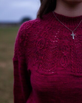 ConstructionThis sweater is worked from the top with the circular yoke method, starting with the neckband. Back, front and sleeves are worked together before separating them to work the body and finally finish the sleeves. This sweater is designed to fit with positive ease (+13-18 cm/ 5-7”).