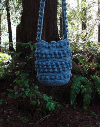 This fabulous little hobo bag is crocheted with plenty of popcorns marching round and round. Then the popcorns march across the shoulder strap. The bag starts at the center bottom and is crocheted in one piece to the top.