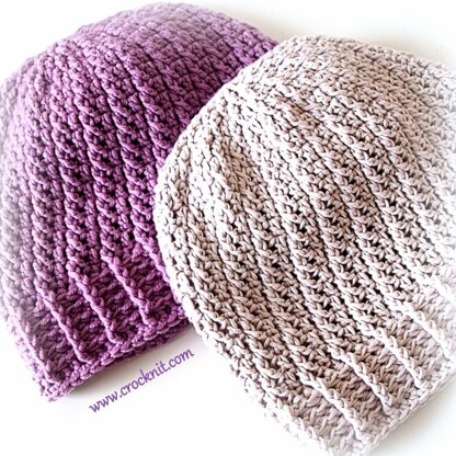 Intriguing stitch pattern inspired by rows of tall, straight poplar trees standing bare of leaves in a wintery landscape. A fresh and young design, the perfect hat for autumn/spring walks.