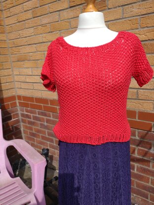 "Poppy" is a textured cotton top, knitted in Moss Stitch (Seed Stitch) and using 2 strands of yarn held together. It's a versatile top which can be worn in its own on warm days, or over a long sleeved t-shirt or blouse on cooler days or for a more formal look.