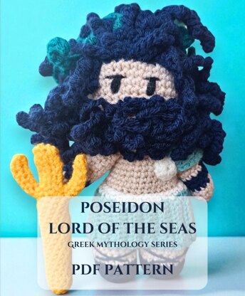 This digital crochet pattern includes step-by-step instructions to create your own amigurumi version of Poseidon, ruler of the oceans, shaker of the earth, and surprisingly huggable for a god.