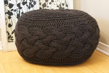 This 25" diameter by 16.5" high Super Chunky Knit Cable Pouffe/ Footstool/ Ottoman / Floor Cushion is knit using 6 strands of acrylic yarn to create a modern over-sized seat. With lots of pictures and instructions this pattern is an easy to follow how-to that includes direction for all the basic steps through knitting, assembling, stuffing and finishing.