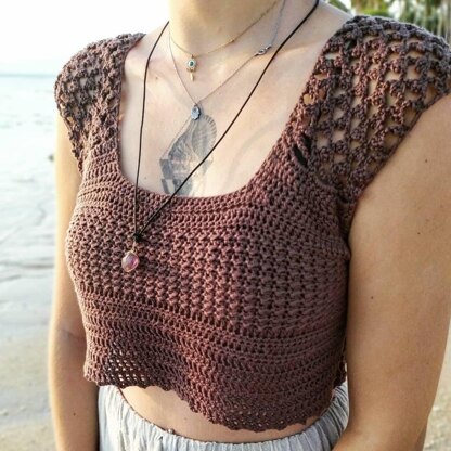 I designed this top while I was living in Kho Lanta, a super cute, tiny island in Thailand. The vibe there was just so inspiring, and I knew I had to create something special. And guess what? The yarn I used for this top is just amazing! It's made from 100% Tencel, which gives it this incredibly soft and silky feel. I found it at a local shop, and I was sold right away.
