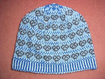 As the pattern has at most two colors in one round and is easy to remember it is also suitable for stranded knitting beginners.