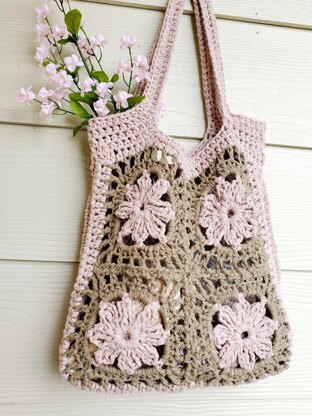 With this pattern you will learn to crochet 2-color flower square and assembly of crochet bag.