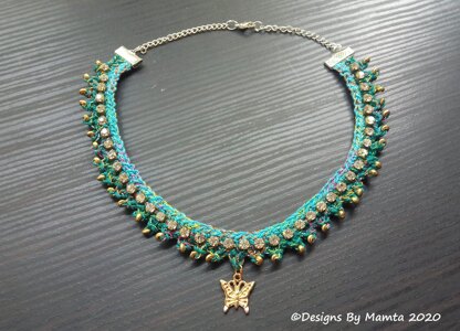 Make this necklace for your young princess or make one for yourself and turn yourself into a princess. I have used beads, rhinestone insertions, some jewelry making components and a little bit of sewing is required to complete this necklace. Otherwise, this is a fairly simple pattern. The stitches used in this pattern are basic.